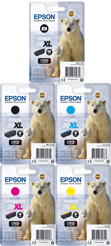 Original Epson T262/3 MCVP / 26 XL Tinte Schwarz Cyan Magenta Gelb bis zu 3000 Seiten